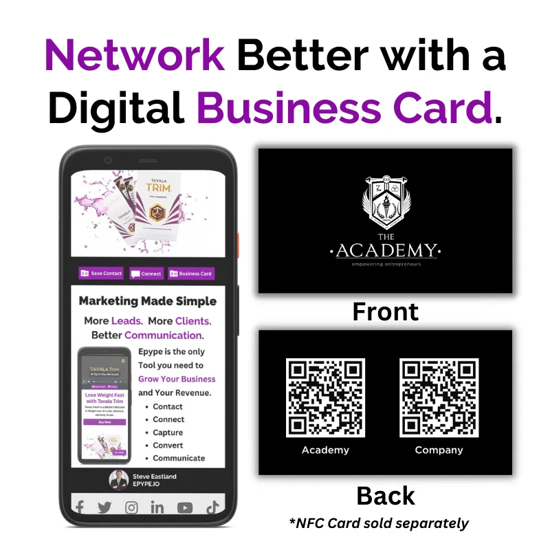 You control what the NFC chip is told to do, so you can put your EPYPE Digital Business Card to work doing more than saying who you are, what you do, and how to reach you.